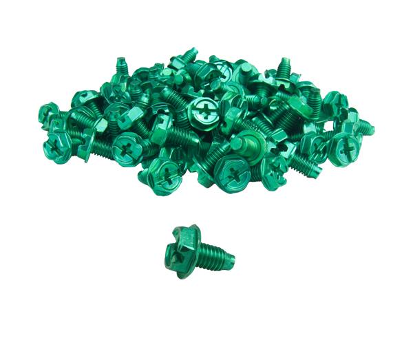 10-32 Ground Screws, 3/8" Green - 100 Pack