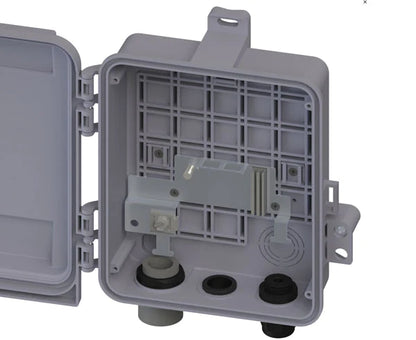 The FB23-4502RNI plastic wall mount fiber enclosure is designed for both indoor and outdoor applications. This enclosure features FlexGrid™ technology for increased versatility. FlexGrid™ equipped boxes are guaranteed to fit any manufacturer's splitter footprint. This wall-mount fiber enclosure is ideal for FTTX applications.
