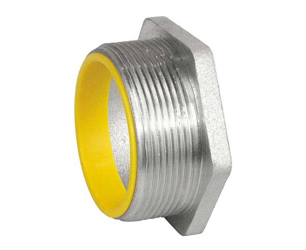 Insulated threaded bushed nipples are used with threaded female conduit couplings to connect conduits to electrical boxes and enclosures or are used with locknuts to connect two junction boxes. Primus Cables' rugged metallic construction ensures mechanical protection. Their insulated throat liner protects wires from sharp edges on conduits.