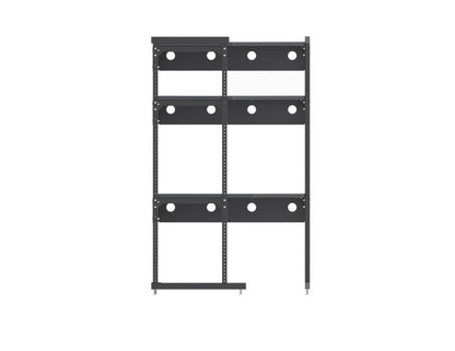 The Kendall Howard Performance Plus LAN / Network Furniture System is easy to configure. However, some applications do not require any special configurations. For that reason, Kendall Howard offers some standard configurations that may meet your requirements. The Kendall Howard Performance Plus Corner 4-Post LAN Station includes two 24" deep shelves, one 30" deep shelf, two side frame kits, one corner support, six shelf support kits, and six cornerback plates. Each shelf will support 850 pounds and is adjustable in 1" increments. The White Nebula laminate is accented with black rubber T-modeling, which complements the black powder coat finish of the frame, back plates, and shelf supports. The Performance Plus Corner LAN Station has a sleek finish that has clean lines and that will compliment any office or IT lab environment. Kendall Howard manufactures the 4-Post Performance Plus LAN Station Corner Unit in the USA and they are backed by our Limited Lifetime Warranty.