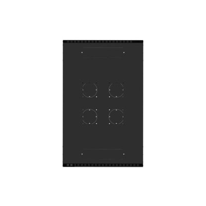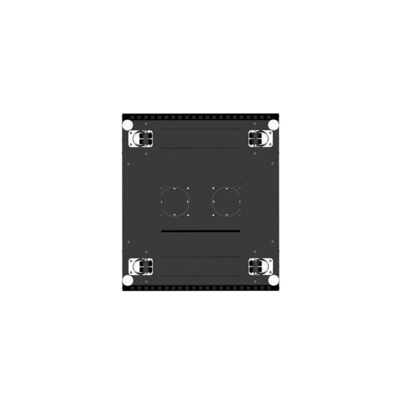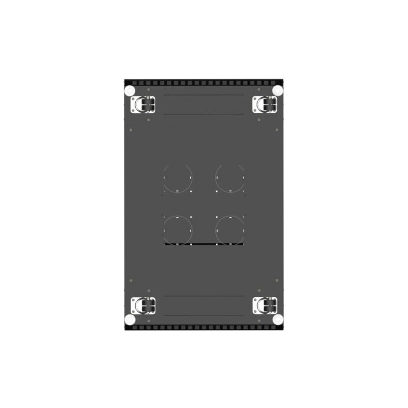 There are numerous cable entry points on both the top and bottom of this open frame rack. There are also four large knockouts on the top of the frame to install fans, or for added cable pass through.