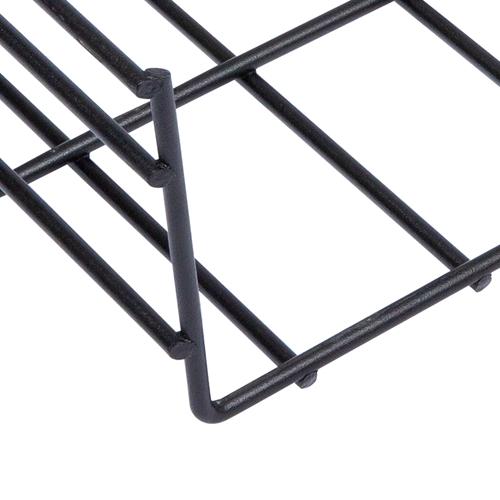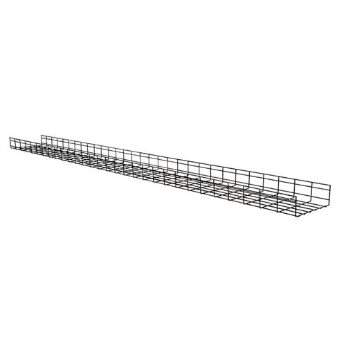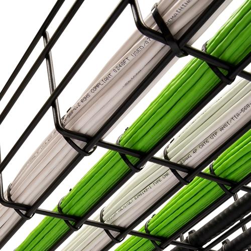 This series wire basket trays provide a durable yet adaptable pathway for routing cables along a wall, floor, or ceiling in a variety of applications, from short runs in a data closet to high-density data center installations. Each tray is constructed of welded high-strength carbon steel wire with stringers spaced every 2” and cross bars every 4”, providing a rigid structure that can handle large cable bundles. And with a black powder coated finish, our wire basket trays will protect both cabling and installers from cuts, scratches, and frays. Each tray section is 118” long but can be cut to any required length.
