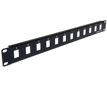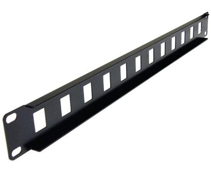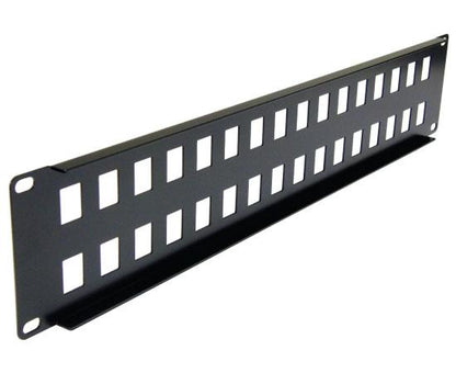 Need the versatility of running different types of networking cable on a project? Blank patch panels allow you to combine Ethernet cable, fiber optic cable, and coax connections through one patch panel. No keystone jacks are pre-loaded into this type of patch panel, so it can be customized according to the application.
