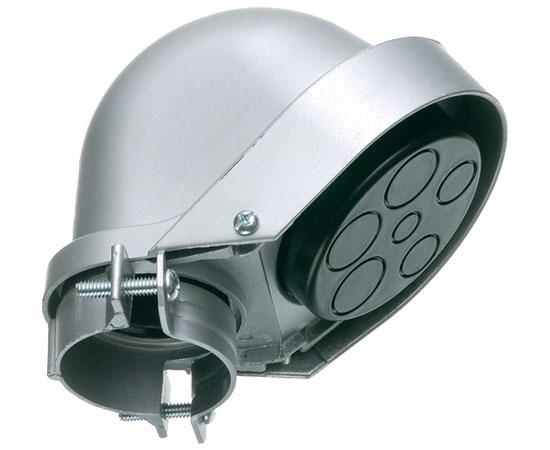 These Mast Reducer Entrance Caps simply clamp on to Multiple Rigid, IMC and/or EMT sizes ranging from a 1/2 inch to 4 inches. This item uses an easy to use a clamp to secure the entrance cap to the various types of conduit. It is made of a durable Gray metal housing with a steel clamp. Also included is an adapter that can fit multiple sizes of cable.