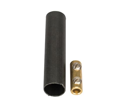 - Mechanical copper butt splice and a heavy wall heat shrink tubing to create a fully insulated splice for copper conductors only.