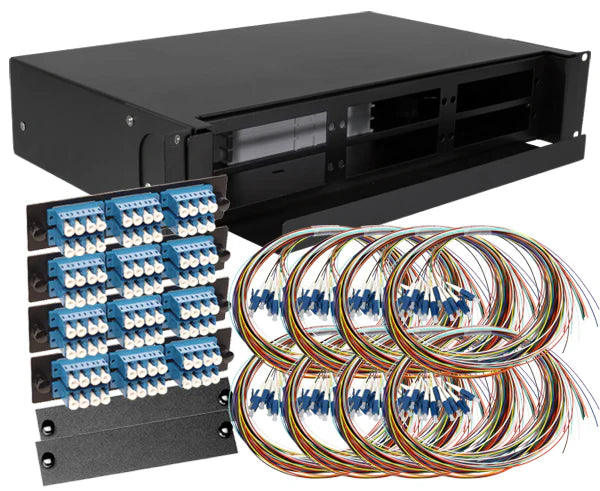 Splice trays, adapter panels and pigtails are included