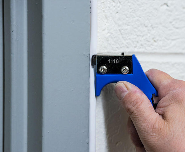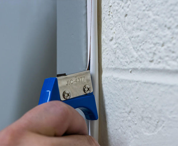 - The slitter blade is located at the top of the tool, has 1/4” of the blade exposed, and is held in place by the 1/2” L-shaped steel guide