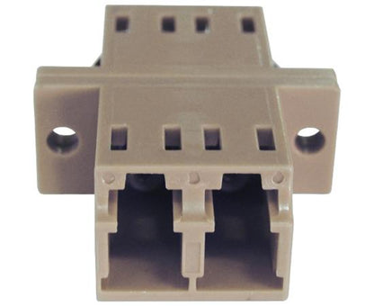 The LC duplex fiber optic adapters have an SC simplex footprint with plastic flanges and are made for our plastic fiber distribution units, loaded fiber patch panels and loaded fiber wall mount enclosures. Each fiber coupler fits securely into designated slots and is used to couple LC connections together.