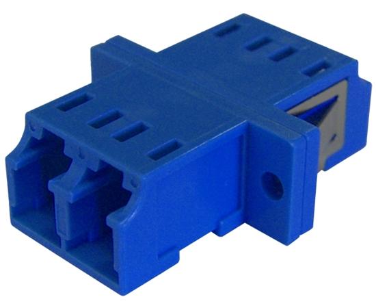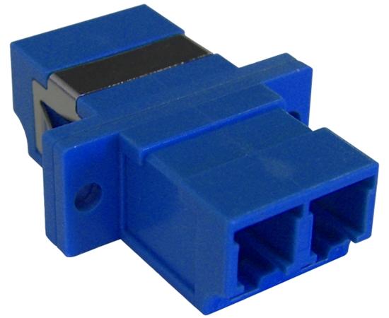 The LC duplex fiber optic adapters have an SC simplex footprint with plastic flanges and are made to supply a single mode option for our loaded fiber patch panels and loaded fiber wall mount enclosures Each fiber coupler fits securely into designated slots and is used to couple LC connections together inside of a fiber distribution unit.
