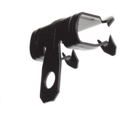The Hammer-On Beam Flange Clip attaches J-Hooks and other hanging hardware from beams that have 1/8"-1/4" flanges. This Hammer-On Beam Clip provides a 'portable' 1/4" Hole for overhead routing and management of CAT5, CAT6, or Fiber Optic cable.