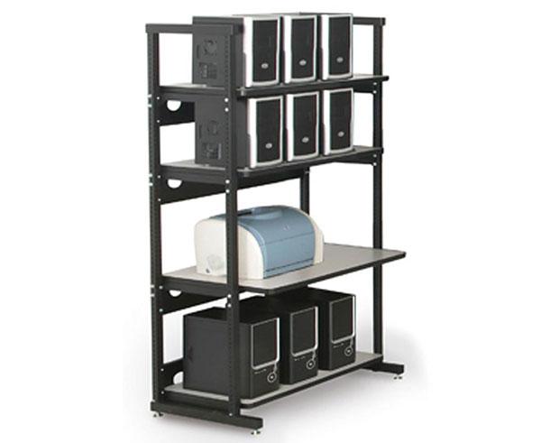 The Kendall Howard Performance Plus LAN / Network Furniture System is easy to configure. However, some applications do not require any special configurations. For that reason, Kendall Howard offers some standard configurations that may meet your requirements. The Kendall Howard Performance Plus 4-Post LAN Station includes three 24" deep shelves, one 30" deep shelf, two side frame kits, four shelf support kits, and four back plates. Each shelf will support 850 pounds and is adjustable in 1" increments. The White Nebula laminate is accented with black rubber T-molding, which compliments the black powder coat finish of the frame, back plates, and shelf supports. The 4-Post Performance Plus LAN Station has a sleek finish that has clean lines and that will compliment any office or IT lab environment. Kendall Howard manufactures the 4-Post Performance Plus LAN Stations in the USA and are backed by our Limited Lifetime Warranty.