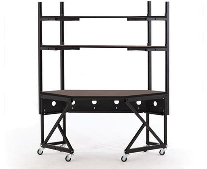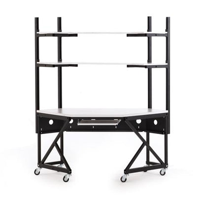 The two upper shelves adjust in any increment, and the Performance 100 Series Corner LAN Station/Work Bench requires a 48" by 48" square foot print. The Performance 100 Series LAN Stations / Work Benches are commonly used as Tech Benches, Video Editing Stations, Command Consoles, Security Monitoring Stations and so much more. All Performance 100 Series LAN Stations / Work Benches are Made in the USA and have a Limited Lifetime Warranty.