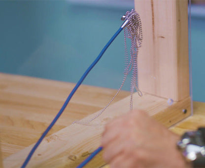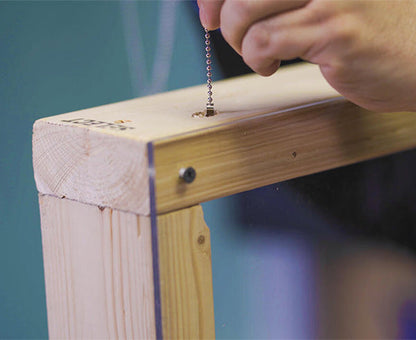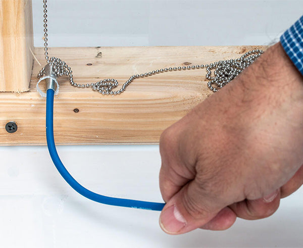 1. Drill a hole in your wall or top plate, then drop the eye loop end of the ball chain down the wall. The chain will collect at the bottom of the wall.