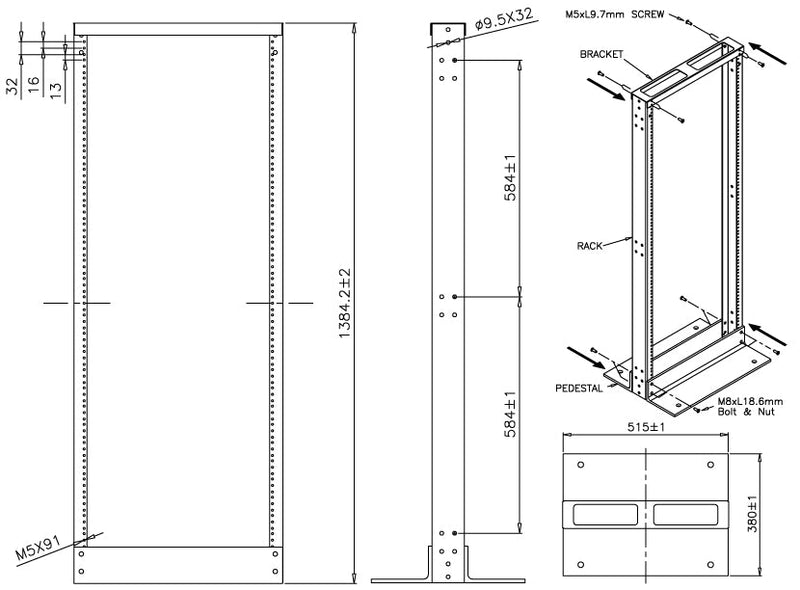 | Description | 27U Relay Rack 4' Tall x 19" Wide, 10-32, Single-Sided |