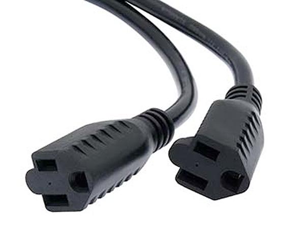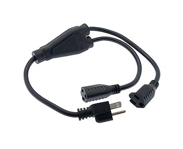 - Qty 1 - 2-Outlet Power Cord Splitter NEMA 5-15P to NEMA 5-15R 16AWG/3, 1 Ft
