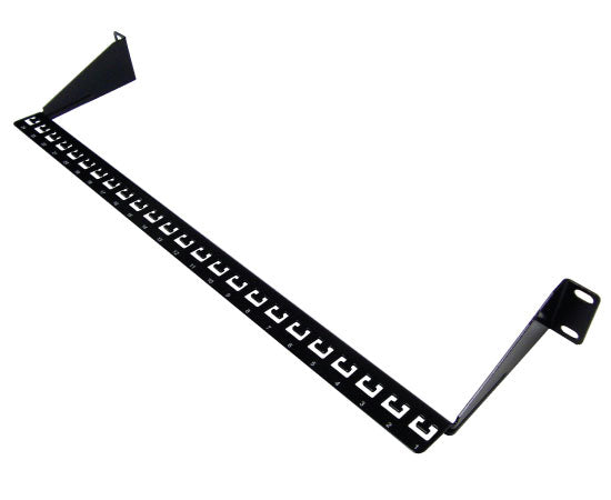 The 1U Rear Cable Support Bar has a rugged black powder-coat to match your racks and cabinets and pre-numbered 24 cable anchor points for installing cable ties. Keeps rear cables neatly organized and supported ensuring maximum communication performance by minimizing cable movement that may cause cables to wiggle loose. Fits in any standard 19" rack, bracket, cabinet or enclosure.