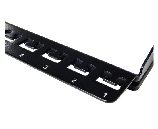 This 24 port cable support bar is a perfect accessory to provide additional weight support for a 1U 24-port or 2U 48-port patch panel (using 1 bar per 1U Rackspace). Can also be used for 3U and 4U patch panels with 24-ports per U if desired. Reverse pre-numbering to match front-side left-to-right port patch panel numbering helps simplify and organize cable configuration.