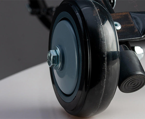 The Jonard Tools CC-2721WS Cable Caddy is made of 7/8” (22 mm) diameter tubular steel, includes wheels, and has a permanently mounted strap for enhanced portability.