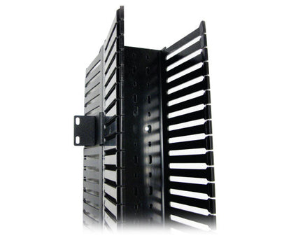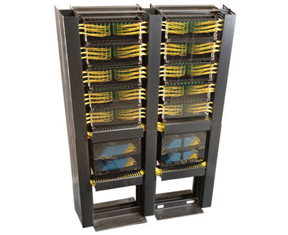 Vertical Finger-Duct Cable Management provides vertical cable management on the side of a network rack. This Double-Sided Vertical Cable Manager is a 7-foot tall Finger Duct Style Cable Management solution that will keep your cables organized and your rack looking good. It features slotted ducts designed to allow cables to be routed at as required to Patch Panels, switches, servers or any rack mounted equipment. Removable covers makes routing your cables easy and keeps your system looking neat. Mounting screws included.