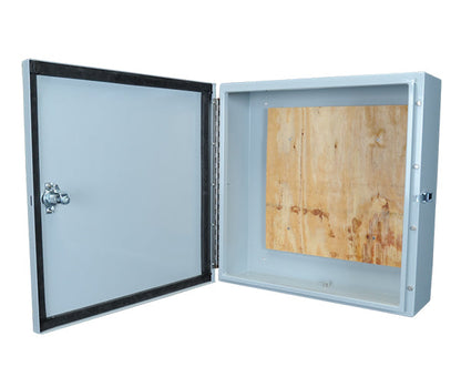 - Qty 1 - Wall Mount Enclosure, UL Listed, NEMA 1 and 4, 100% Weatherproof, Metal