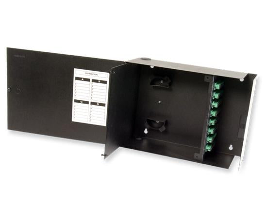 Wall Mount Fiber Patch Panel, Single Outer Door, Holds 8 Splice Trays and 8 Adapter Panels, Up to 96 Ports, Black